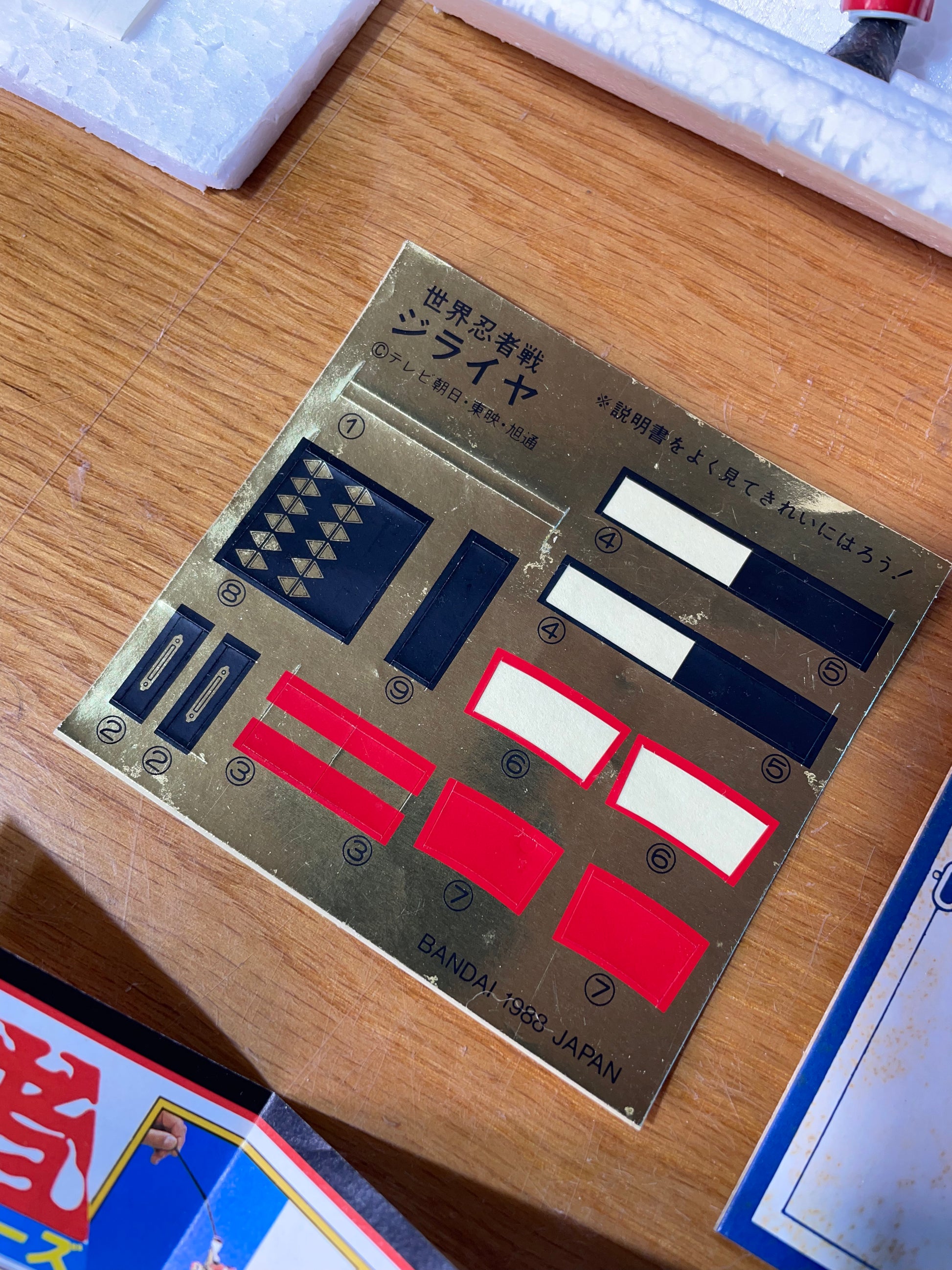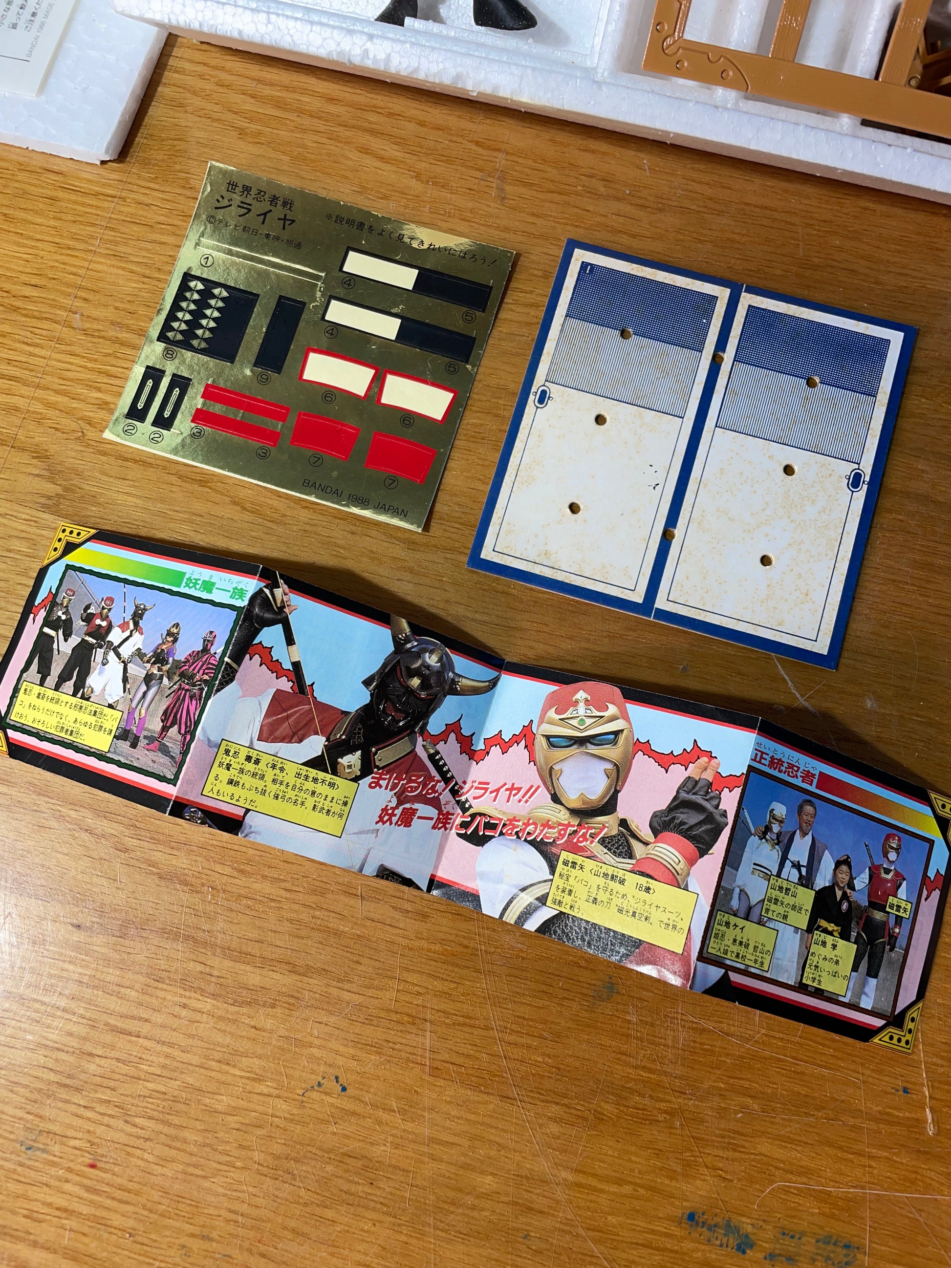 Condition : État REMARQUABLE compte tenu de l'âge de la figurine / Élasticité de la figurine encore effective / Tous les éléments sont présents et certains autocollants encore sur support d'origine / Tâches d'humidité sur un des éléments en carton / Polystyrène rutilant et notice blanche (voir photos pour tous ces détails) ⚠️ par précaution, la figurine sera envoyée telle quelle dans son armure